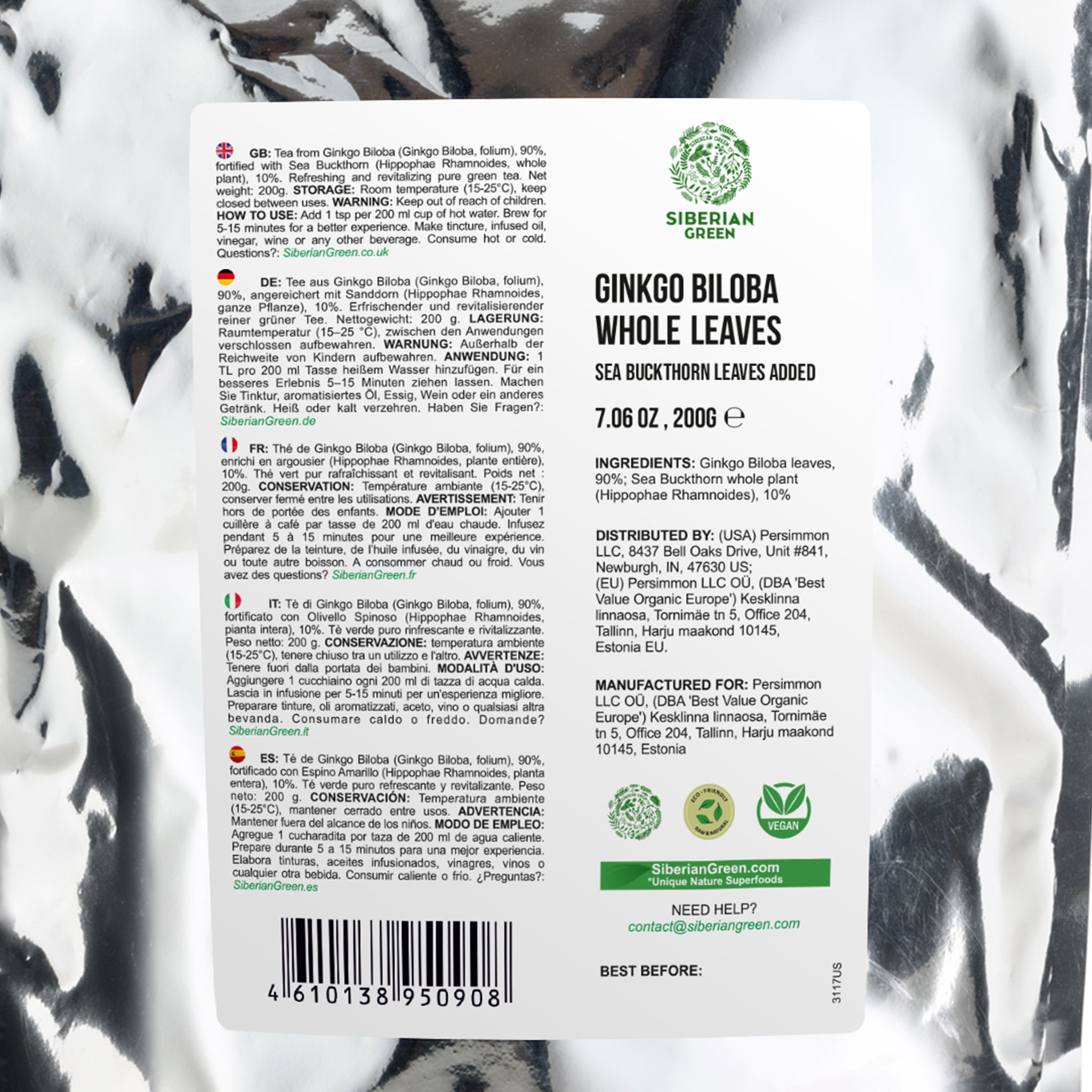 Tè di foglie di olivello spinoso Ginkgo Biloba - 200 g - Miscela di erbe raccolte in natura