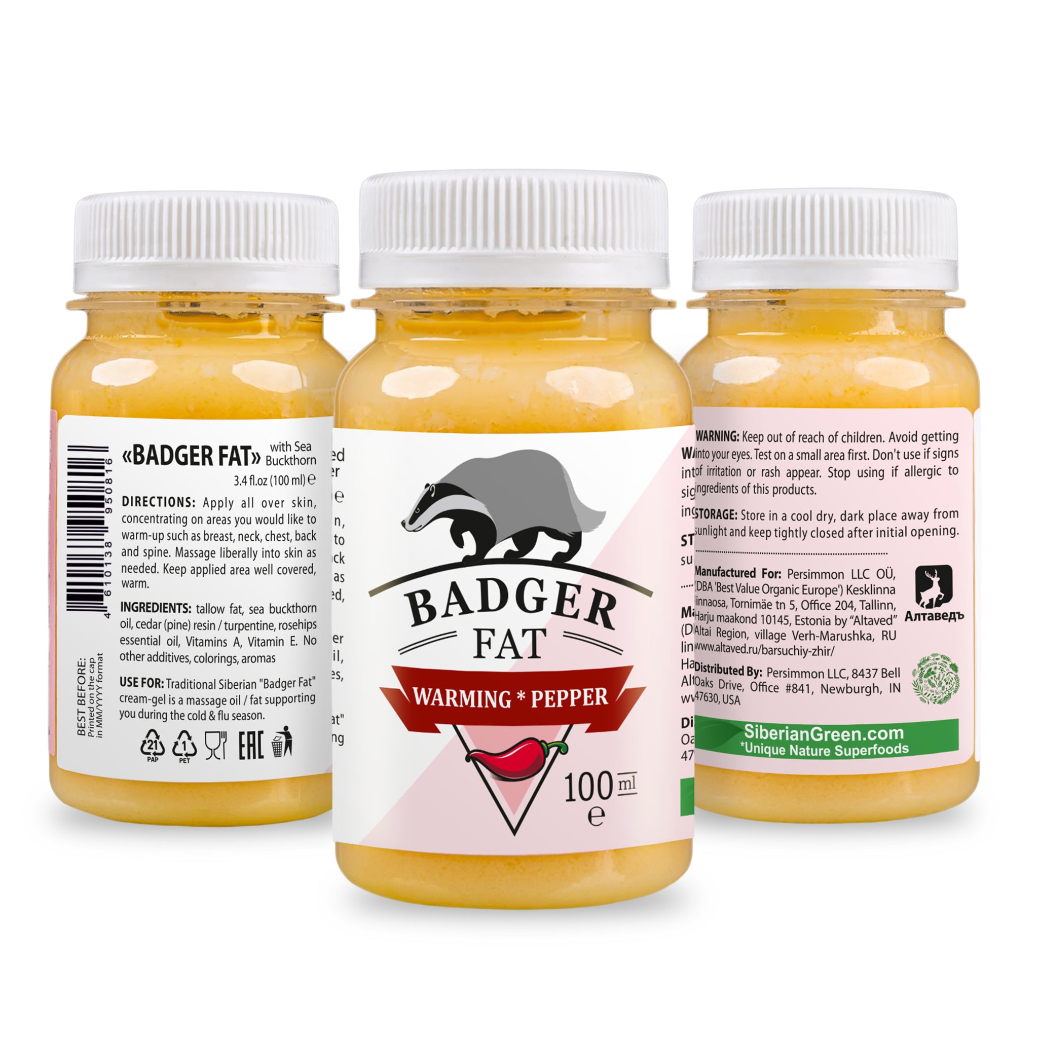 La crema di grasso di tasso siberiano è tradizionalmente utilizzata per riscaldare il corpo durante la stagione fredda e per migliorare la circolazione dell'organismo. Di solito viene applicata sul petto, sulla schiena e sul collo per alleviare i fastidi stagionali.