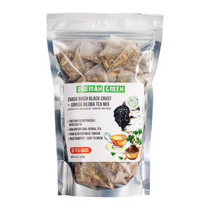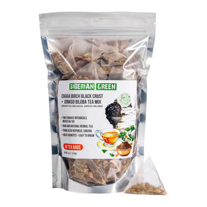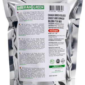 Rilassatevi con il tè verde Siberian Ginkgo Biloba con Chaga per una miscela che ha un sapore e una sensazione di benessere, realizzata con cura per creare un tè salutare infuso con ginkgo biloba e funghi chaga siberiani. Ogni bustina di tè è priva di OGM, riempitivi e additivi artificiali e offre un'esperienza sana e ricca di sostanze nutritive. Provenienti in modo sostenibile dall'incontaminata Repubblica dell'Altai, queste bustine vi offriranno il meglio della natura.